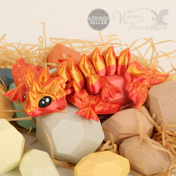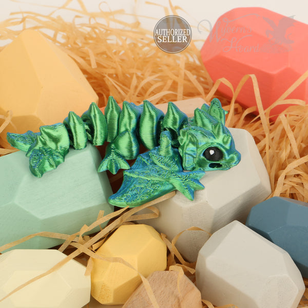 The Wyvern's Hoard proudly presents the 3D Printed Baby Wyvern Fidget Toy Keychain – a delightful fusion of fantasy and functionality that will captivate your imagination and relieve stress. This adorable 3D Printed Baby Wyvern Fidget Toy features a cute baby wyvern design that's sure to bring a smile to any face!